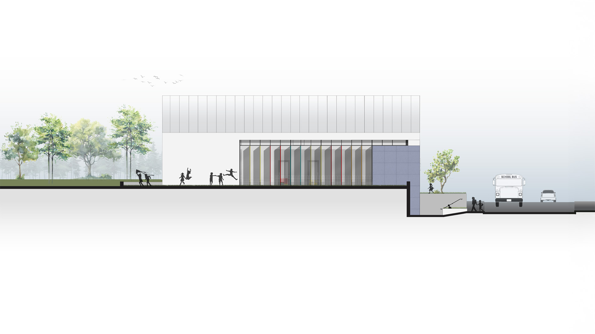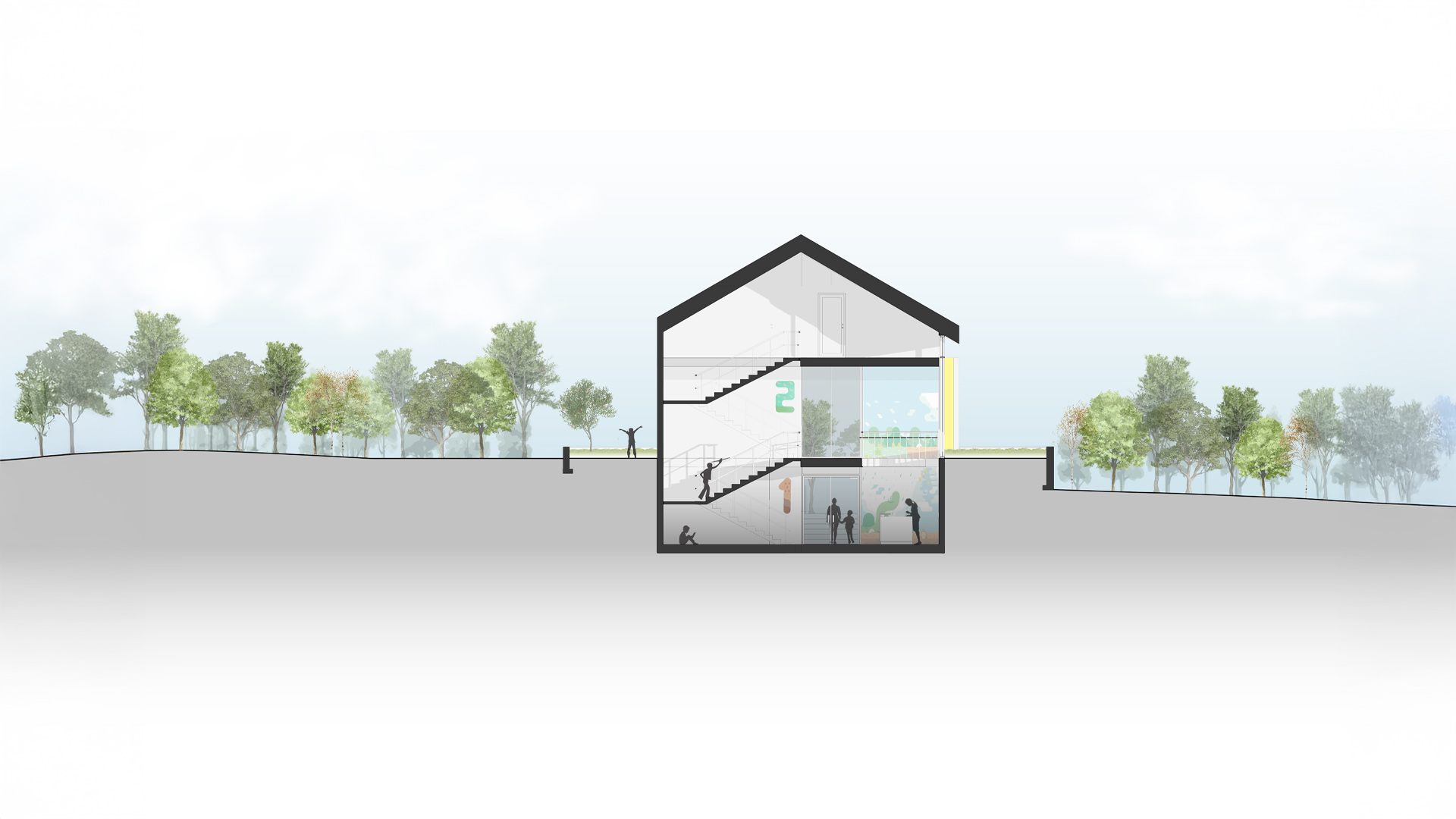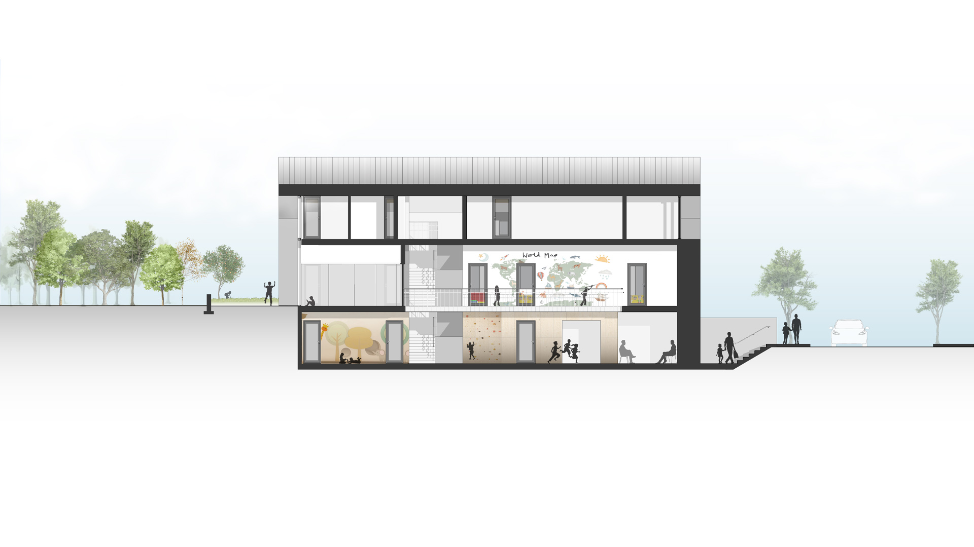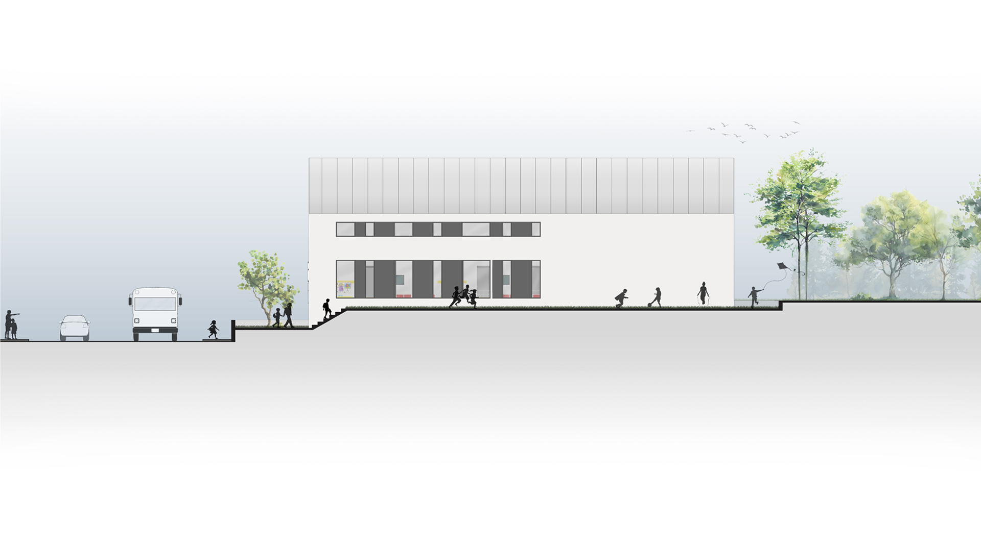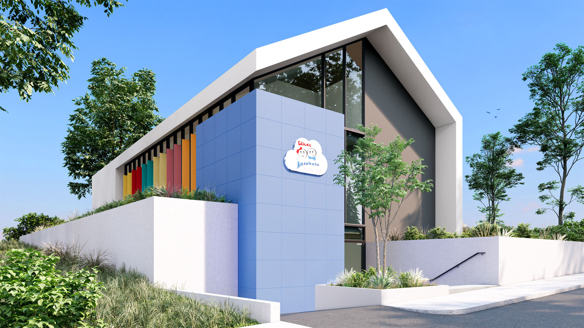 Located on a sloping topography between two parcels in Özlüce, Bursa, the Güleç Kindergarten building aims to offer exciting experiences for its young users by creating intermediate levels within the section, taking advantage of the elevation difference. A protected interface welcomes users into the building from the south facade, facing the street, and provides access to the rear and side gardens on the upper level without interrupting the continuity. The basement entrance features recreational and active sports and play areas. Upstairs, the classrooms, with the garden adjacent to them, offer a unique experience. Above the classrooms is a sleeping room, designed like an attic.