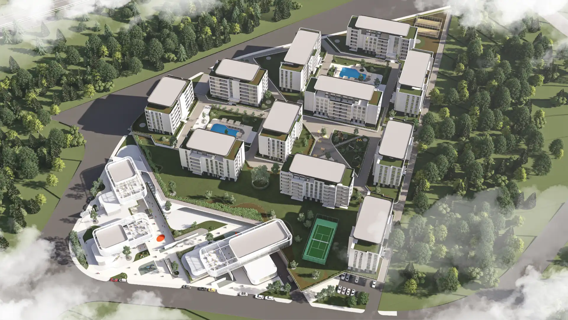 Our proposed project, comprised of residential and commercial units planned on a plot of approximately 45,000 m², aims to bring dynamism to the city's newly developing district. The commercial units, facing the city, allow users to experience units at different elevations while providing privacy to the residential blocks as a sheltered perimeter. The squares belonging to the commercial units open onto the surrounding street and create a social space that facilitates a variety of activities. The residential complex has been diversified to meet current needs and diverse demands. The residential blocks, comprised of 11 blocks and 282 independent units, are enriched with a perspective that blends with the landscape, offering users brand new visual experiences beyond the city's typical apartment building typology, and in some cases, extending the landscape into the common areas within the building.